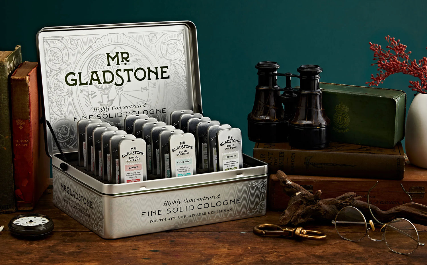 Captivating and reliable, Mr. Gladstone's highly-concentrated solid colognes are with your for the long haul. Portable, durable and discreet, a mere dab on the pulse points has the endurance to withstand a long day's journey into night.